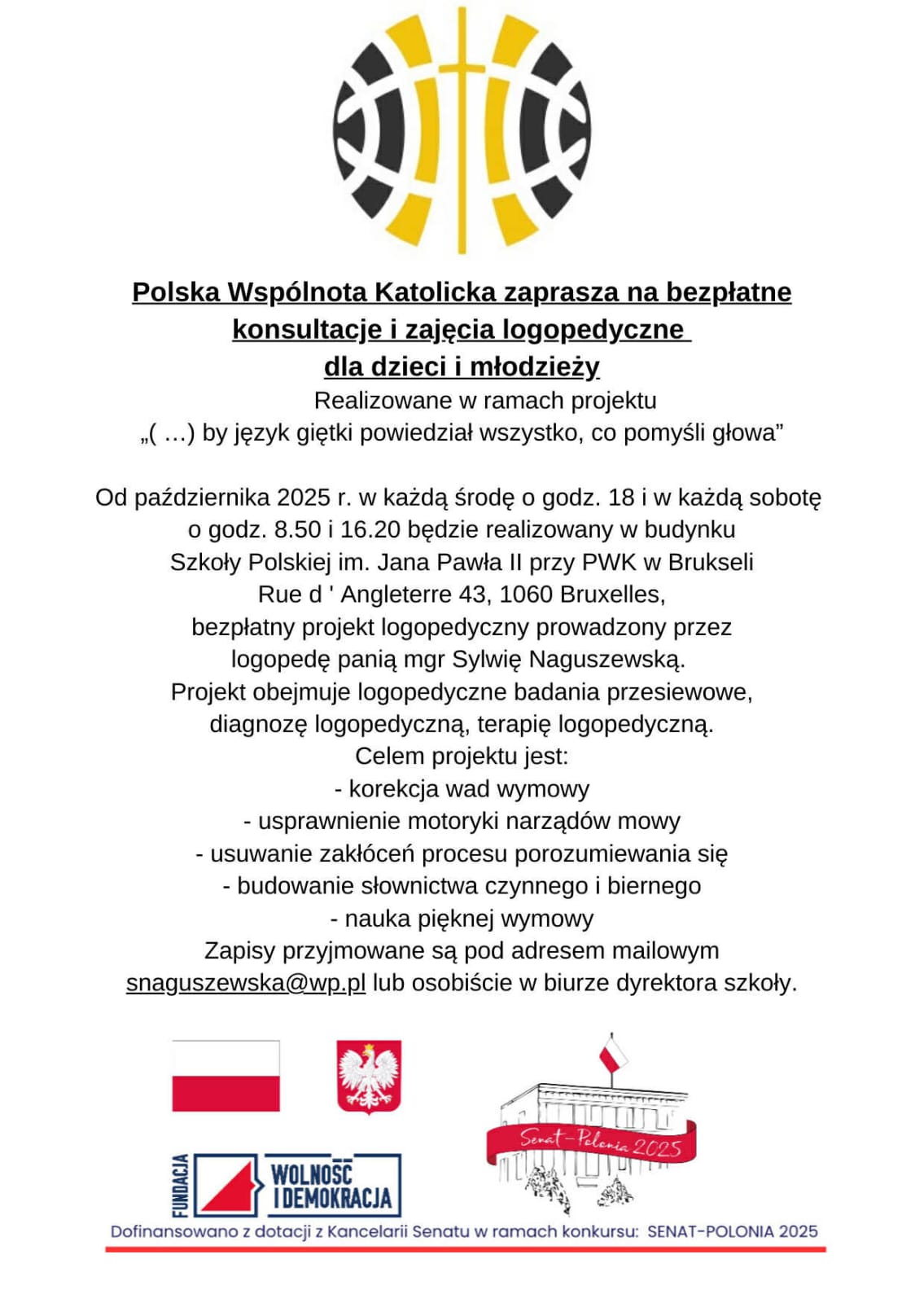 Od 04 marca 2026 rozpoczęliśmy wstępne zapisy uczniów do: ODDZIAŁÓW DZIECIĘCYCH, SZKOŁY PODSTAWOWEJ, ZAPISY DO LICEUM ROZPOCZNĄ SIĘ 15 MARCA W SZKOLE POLSKIEJ IM. JANA PAWŁA II PRZY AMBASADZIE RP W BRUKSELI Z SIEDZIBĄ PRZY POLSKIEJ WSPÓLNOCIE KATOLICKIEJ NA ROK SZKOLNY 2026/2027. Do klasy pierwszej zapisujemy dzieci urodzone w 2019 r. Do oddziału dziecięcego 4,5,6