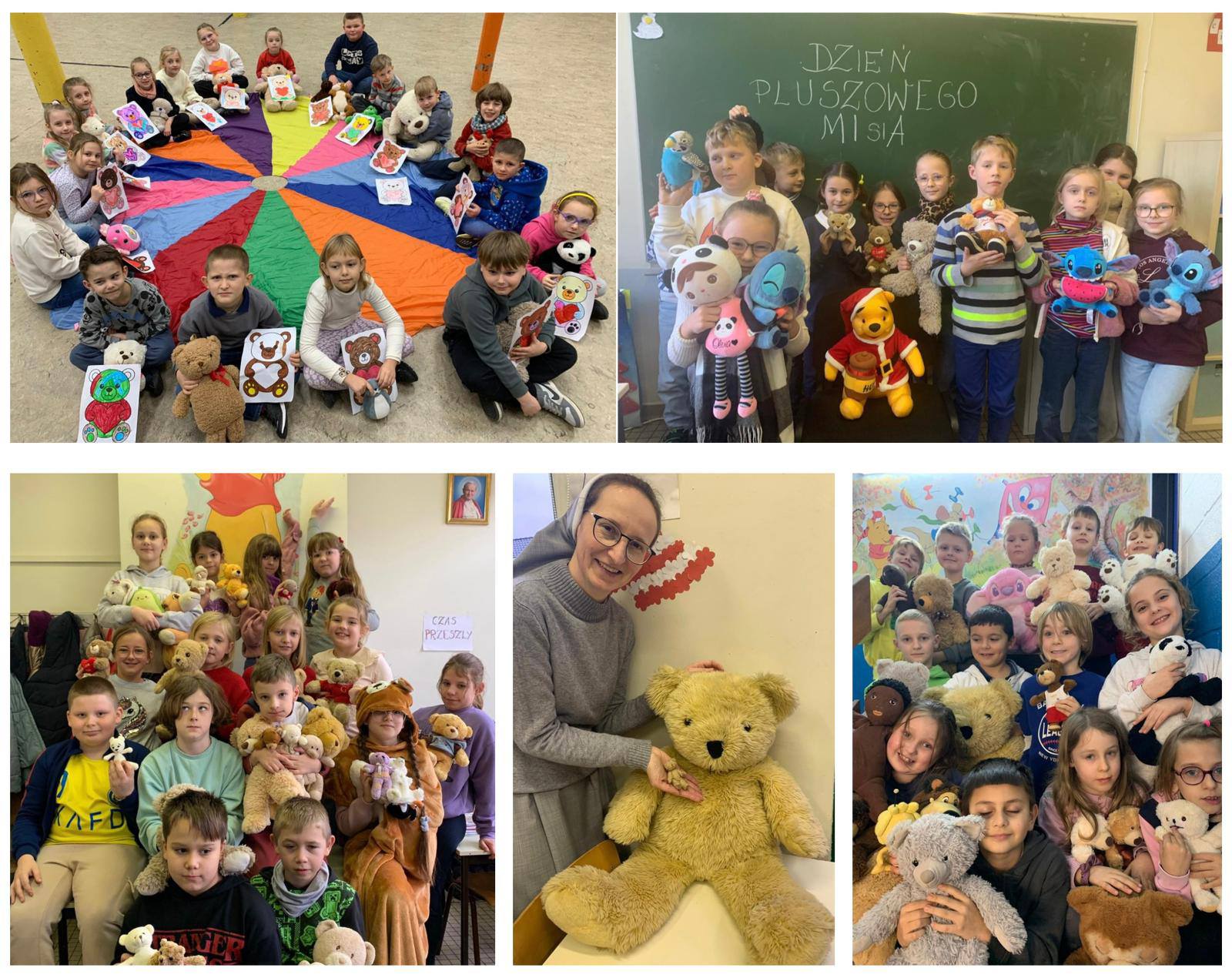 W naszej szkole klasy młodsze i starsze świętowały Dzień Pluszowego Misia. Był to czas kreatywności i wspólnej zabawy. Uczniowie oglądali film o misiach, który wprowadził ich w tematykę zajęć, a następnie rozwijali ekspresję słowną, opowiadali też o swoich ulubionych pluszakach i misiowych przygodach. Nie zabrakło zabaw przy muzyce. To był wyjątkowy tydzień, pełen ciepła i