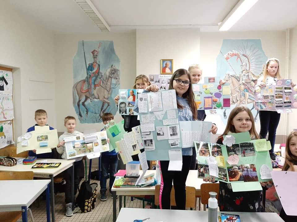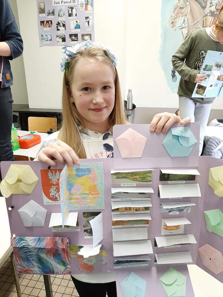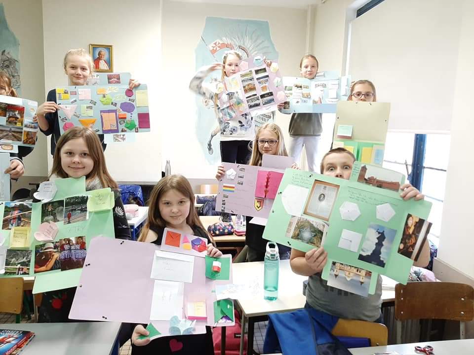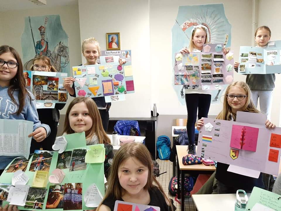 Uczniowie klasy 4 d przygotowali w ramach lekcji wiedzy o Polsce projekt pt. – „Moja mała ojczyzna” – o miejscu w Polsce, do którego jeżdżą na wakacje i gdzie mają rodzinę. Zadanie łączyło zagadnienia historyczno – geograficzne z polonistycznymi.