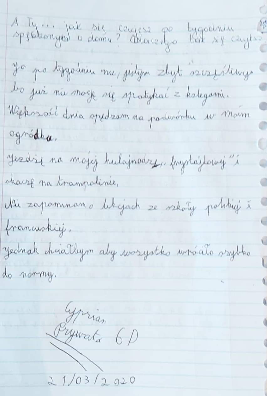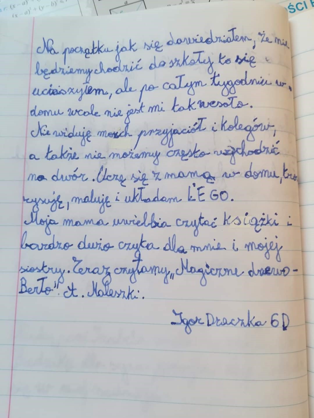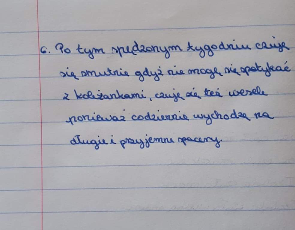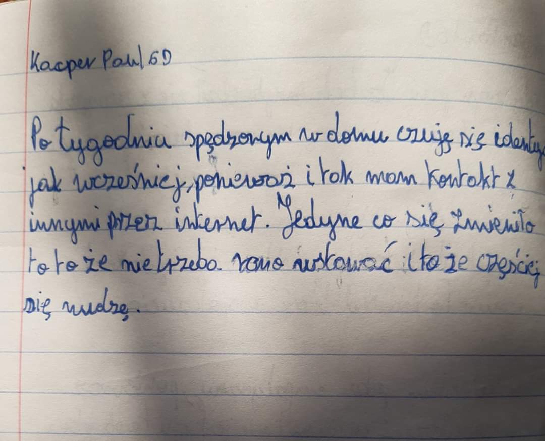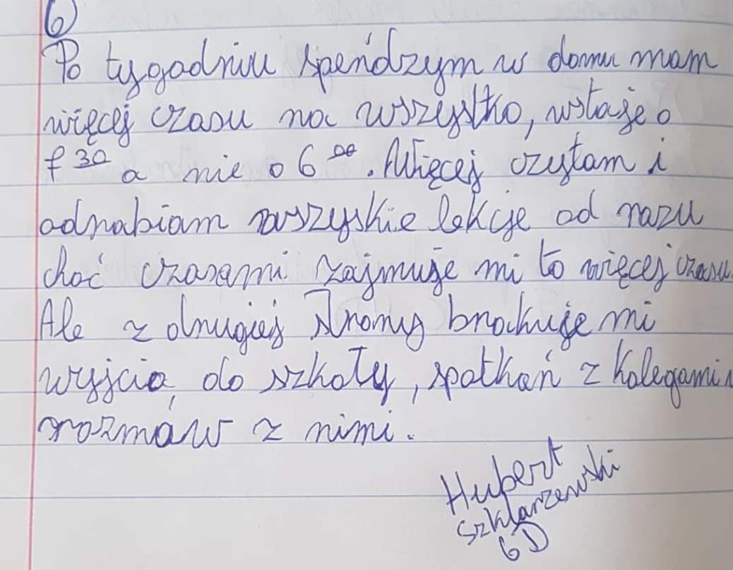 Takie zadanie otrzymali uczniowie kl. 6d przy okazji lekcji o emocjach. Odpowiedzi były najróżniejsze. Niektórzy twierdzili, UWAGA, że tęsknią za szkołą. Zapraszamy do lektury, to bardzo interesujące refleksje!