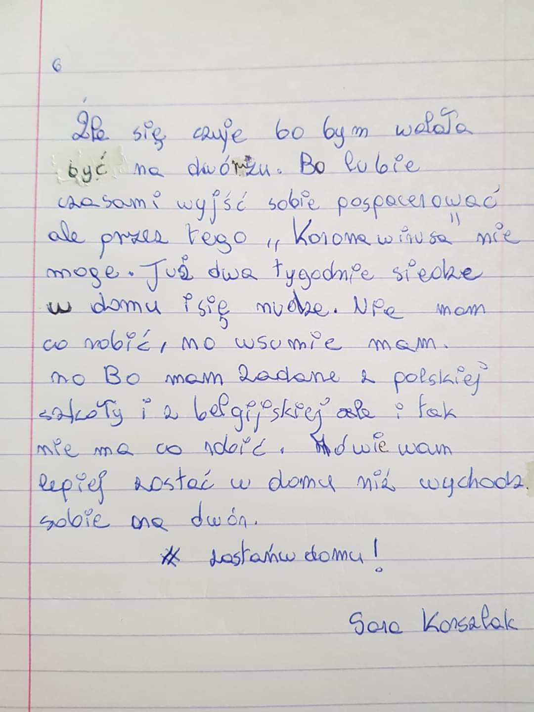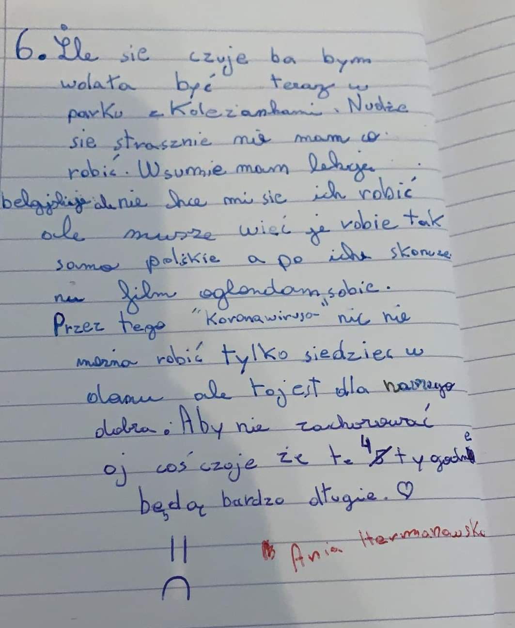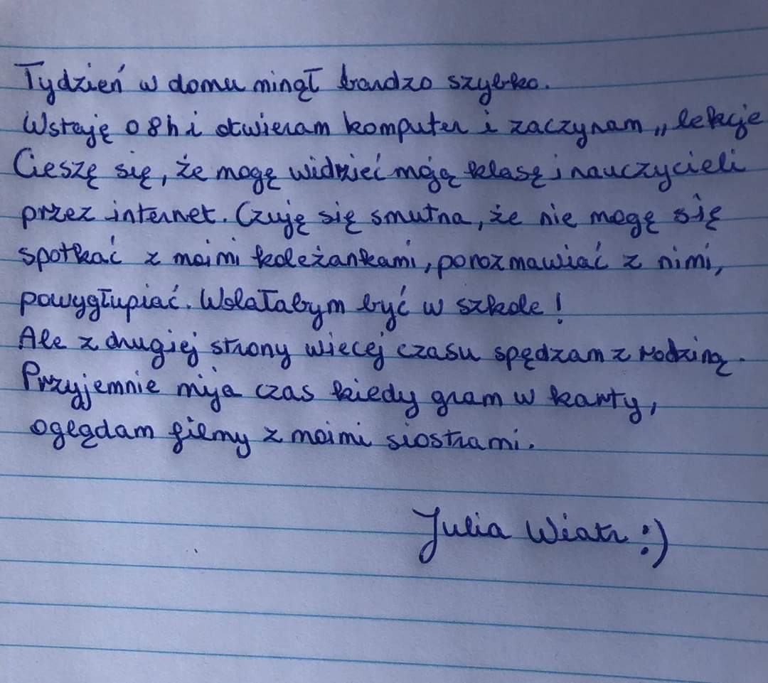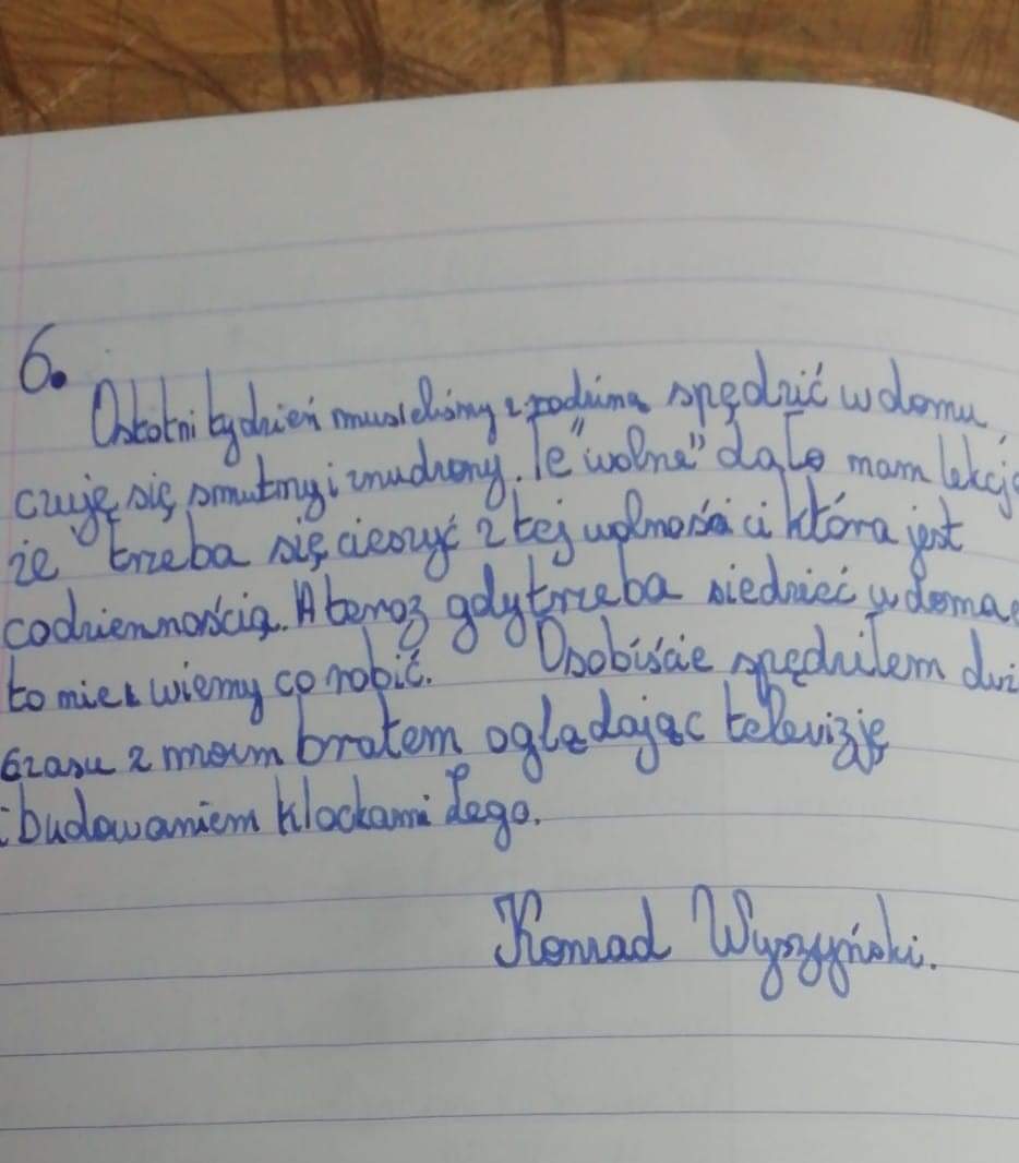 Takie zadanie otrzymali uczniowie kl. 6d przy okazji lekcji o emocjach. Odpowiedzi były najróżniejsze. Niektórzy twierdzili, UWAGA, że tęsknią za szkołą. Zapraszamy do lektury, to bardzo interesujące refleksje!