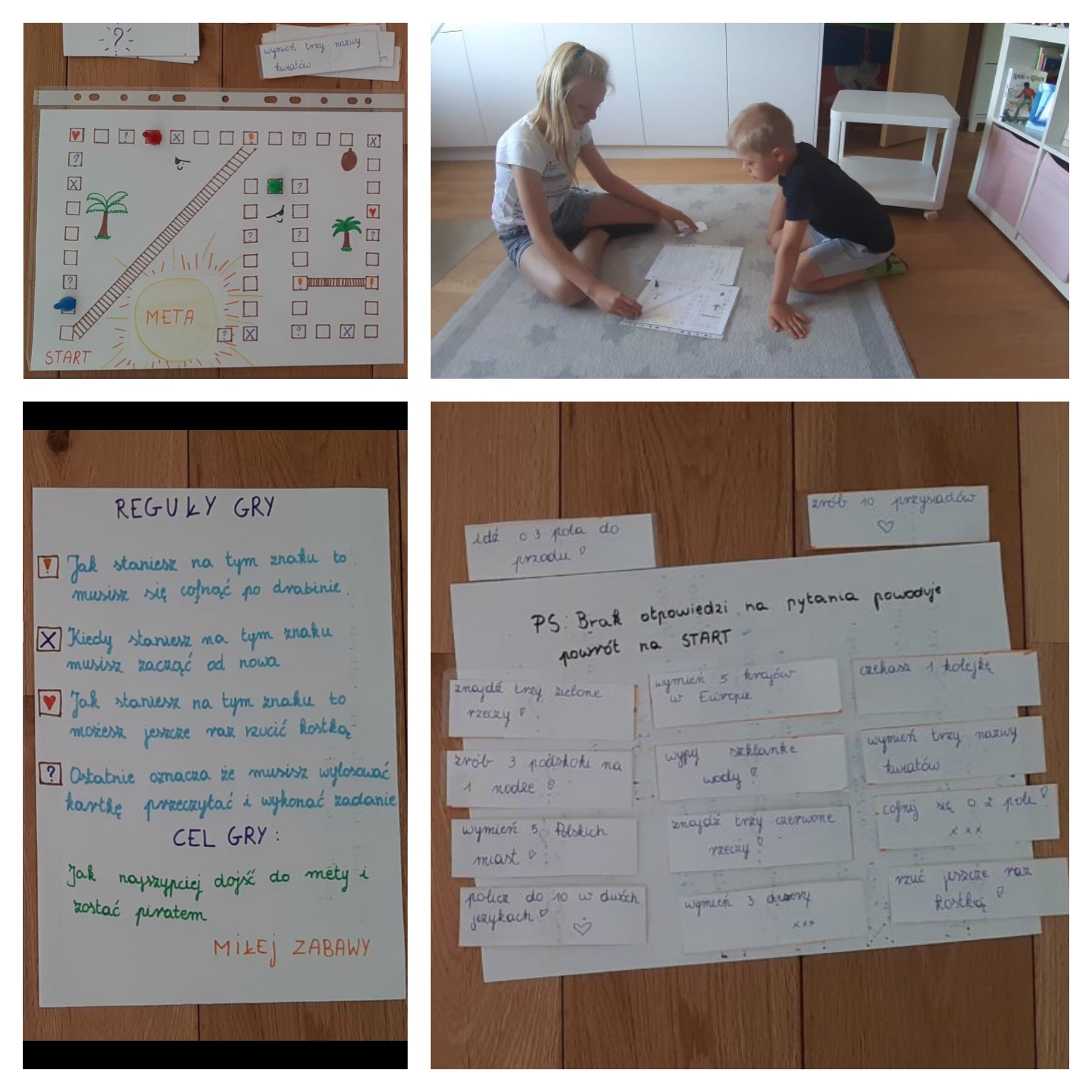 Nicole Nazaruk z kl. 4d zaprojektowała i własnoręcznie wykonała (jako zadanie dodatkowe z j. polskiego) grę planszową dla kilku osób pt. „Zostań piratem”. Wystarczy kostka do gry i pionki – i już można zaczynać!