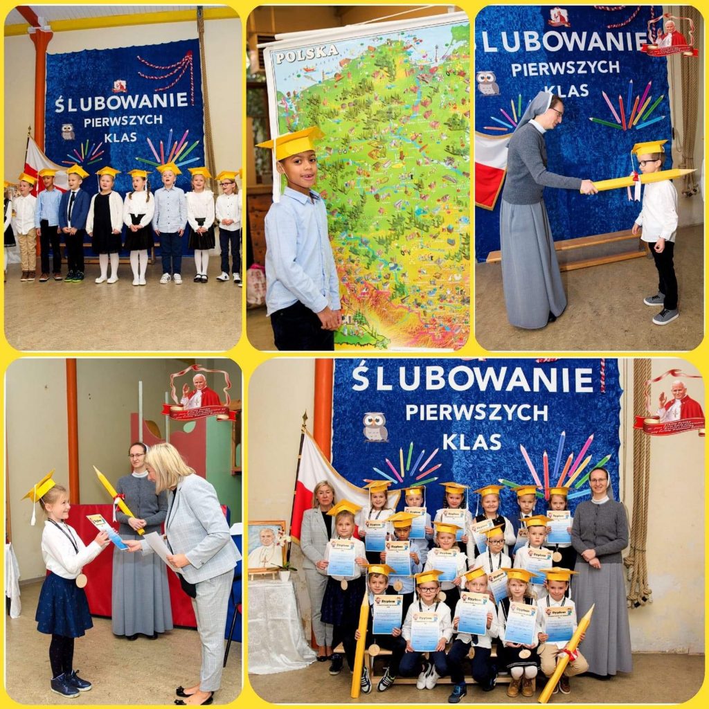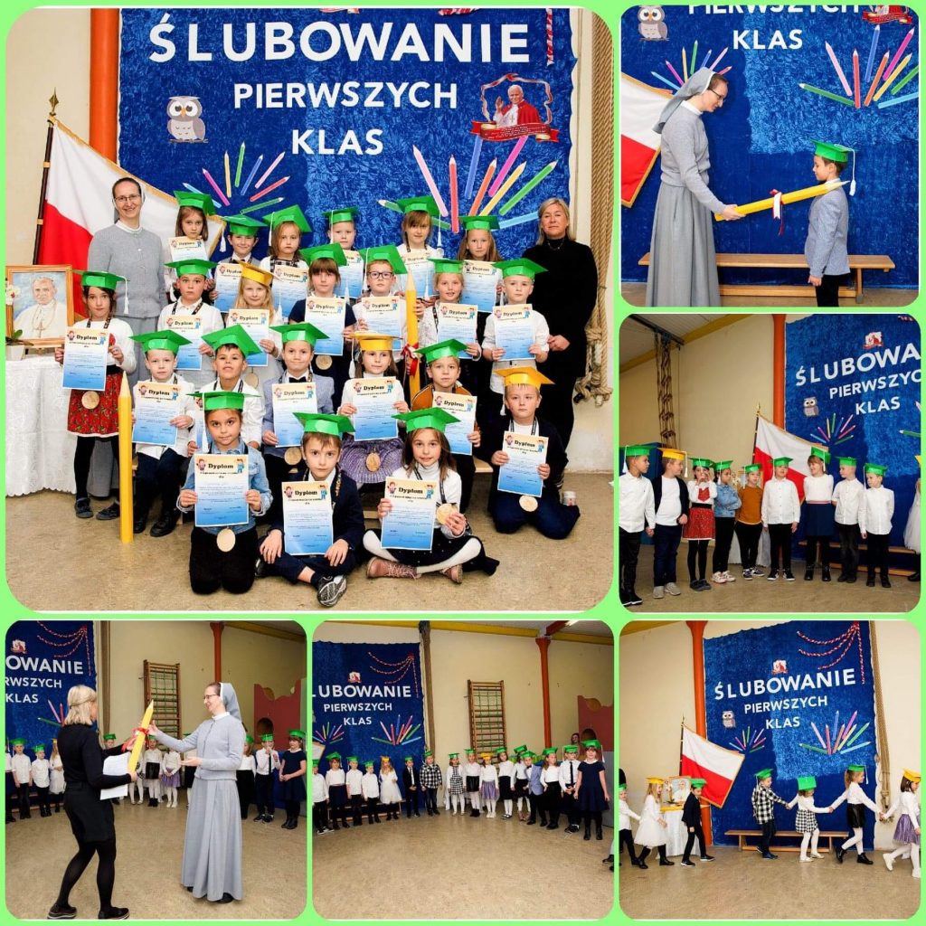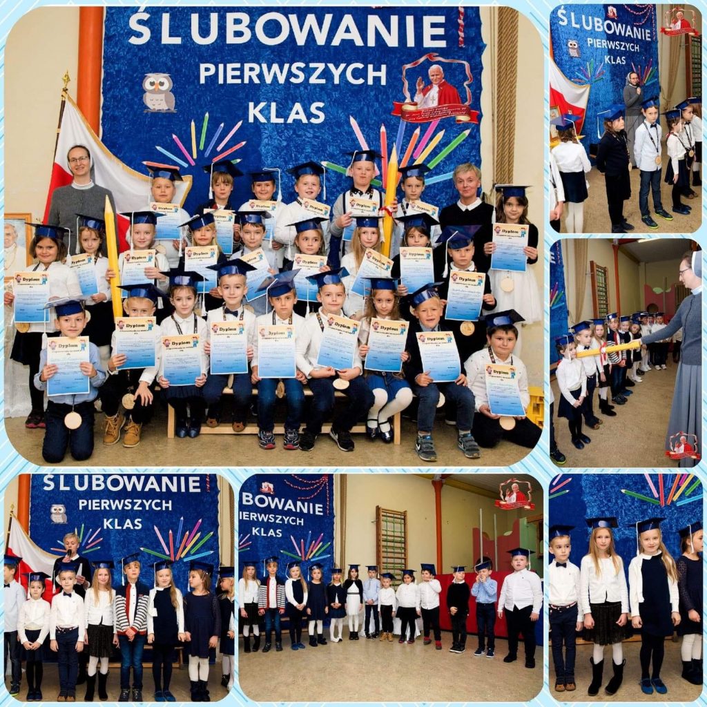 W niezwykle podniosłej atmosferze, w obecności kierownik szkoły, rodziców i nauczycieli – uczniowie klas pierwszych ślubowali być dobrymi Polakami, godnie reprezentować swoją szkołę, swym zachowaniem i nauką sprawiać radość rodzicom i opiekunom.