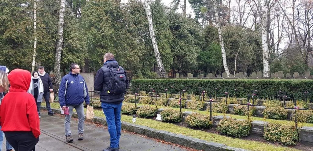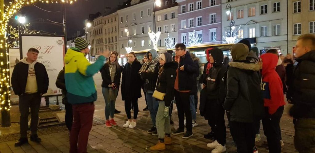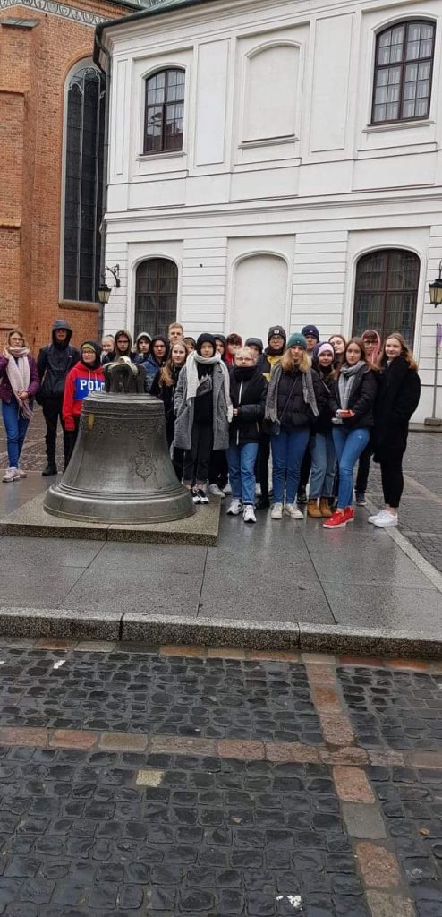 W sobotę licealiści dzięki pomocy pracowników Instytutu Pamęci Narodowej, p. Markowi Nadolskiemu i p. Oldze Tumińskiej odbyli niezwykłą „podróż w czasie” po cmentarzu na Powązkach i szlakiem powstańczym na Starym Mieście. Następnie zwiedzali z przewodnikiem Łazienki Królewskie, Stadion Narodowy, zobaczyli pokaz świateł w pałacu w Wilanowie oraz Grób Nieznanego Żołnierza. W niedzielę dzień rozpoczął się od zwiedzania Zamku Królewskiego, Pomnika Powstania Warszawskiego, Kaplicy Katyńskiej – Mauzoleum w Katedrze Polowej Wojska Polskiego, budynku Politechniki Warszawskiej, miejsc w byłym getcie warszawskim, Pałacu Kultury i Nauki oraz Muzeum Powstania Warszawskiego. Mimo krótkiego pobytu w Warszawie spędzili go bardzo intensywnie i ciekawie, a wspomnienia pozostaną na długo w ich pamięci.